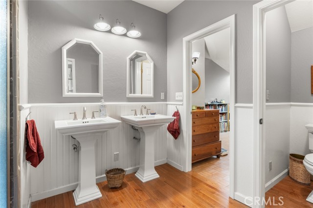The interior has been meticulously updated to preserve its character while adding contemporary elegance. The heart of the home features stunning exposed wooden beams, rich hardwood floors, and a spectacular kitchen finished with premium granite countertops. Uniquely designed for flexible living, the floor plan boasts two complete primary suites—one on the main level and one upstairs. The upper primary retreat is a masterclass in style, with a fireplace and featuring a newly upgraded bathroom with a classic clawfoot soaking tub, double sinks, a walk-in shower, and a private water closet.