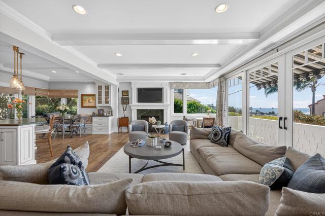 Breathtaking sunset and ocean view coastal home in Cardiff by the Sea’s coveted Composer District, steps to the surf and sand. Masterfully curated by renowned Disney architect Jim Herecka, this timeless residence was extensively remodeled with exceptional craftsmanship and the finest finishes throughout. Reclaimed antique oak floors, leathered granite countertops, custom shiplap and wainscoting, and elegant coffered ceilings create a refined yet inviting coastal paradise. Designed for seamless indoor-outdoor living, the private backyard features a pizza oven, built-in BBQ, and fireplace. Enjoy panoramic sunset and ocean views just steps to Cardiff Village offering world-class dining, coffee shops, boutiques, the Cardiff Rail Trail walking trails, top-rated schools, and iconic beaches with magazine featured surf breaks. A rare opportunity to own one of Cardiff by the Sea’s most distinctive, beautiful, and sought-after coastal homes.
