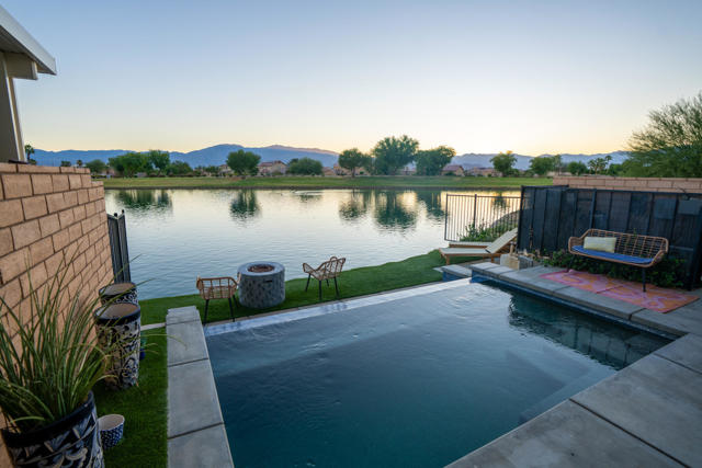 Nestled on a premium lakefront parcel in the guard-gated Terra Lago community, this stunning 4-bedroom, 3.5-bath desert retreat offers the rare combination of natural beauty, modern luxury, and smart investment potential -- all fully furnished and move-in ready.Perfectly positioned as an end unit with no homes across the way, this turnkey home delivers sweeping mountain views, greenbelt privacy, and effortless resort-style living from the moment you arrive. Step inside to a bright, open-concept living and dining area with soaring ceilings and an abundance of natural light. The chef's kitchen features a large center island, and stainless steel appliances -- ideal for gathering and entertaining. Upstairs, the primary suite opens to its own private covered balcony overlooking the lake and mountains, your personal sanctuary at the end of every day. Three additional bedrooms, a versatile loft with pool table, dedicated laundry area, and thoughtful designer finishes throughout complete the upper level. Step outside to a private backyard perfectly suited for entertaining or unwinding under the endless desert sky.Terra Lago's resort-caliber amenities include a 20-acre lake, resort-style pool and spa, fitness center, clubhouse, and 24-hour guard-gated entry with roving security patrols -- all with HOA-provided high-speed internet and cable included. The community is STR-friendly, and this home has the rental history to back it up. Whether you're looking for a full-time residence, a luxurious second home, or a savvy investment property, this one checks every box. Just minutes from the Coachella and Stagecoach festivals, world-class golf, dining, and entertainment. Contact listing agent to schedule appointment.