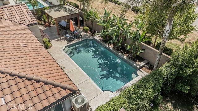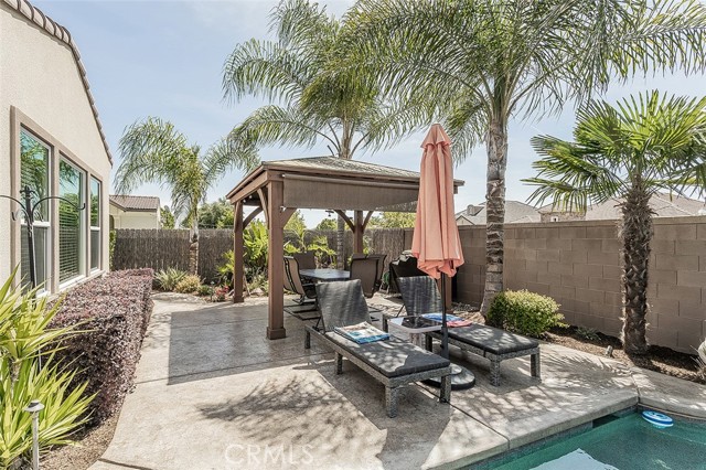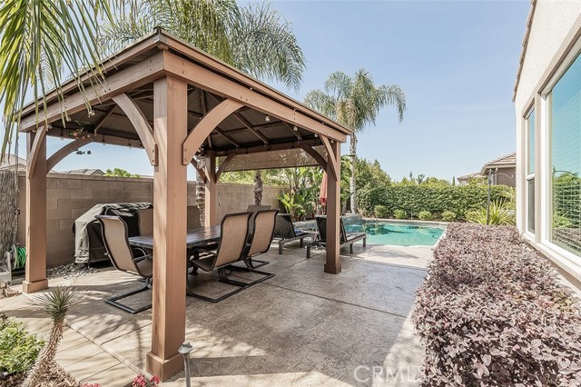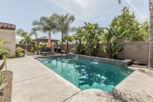 Step outside to your private backyard oasis, complete with a PebbleTec pool featuring elegant waterfalls and lighting, heated by an efficient Sol-Tek solar system for year-round enjoyment. The outdoor space is enhanced by stamped concrete on the side and back yards, a charming gazebo, and a storage shed. A wrought-iron gate next to the garage adds both function and curb appeal.