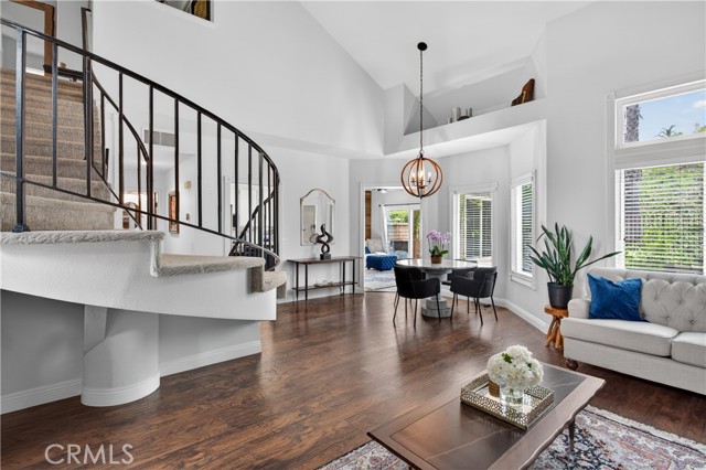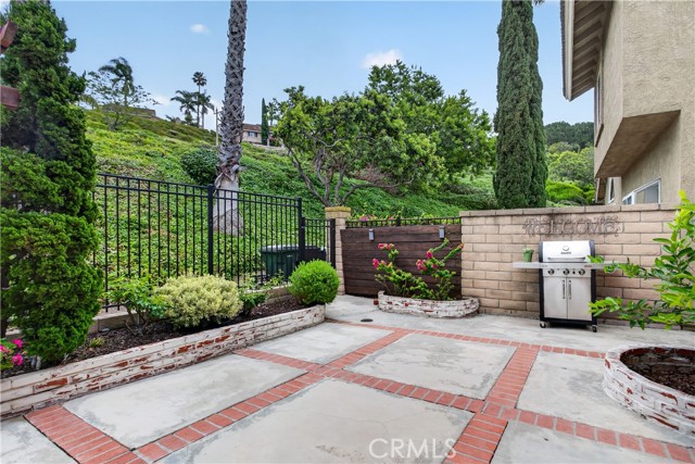 Surrounded by nature - greenbelts, hillsides and hiking trails, and nicely nestled on a quiet cul-de-sac, high in the peaceful hills of Anaheim. Upgraded and Move-in ready. Enter into the formal living room with high ceilings that give that large, open feel. The kitchen opens to the family room and flows nicely to the spacious, low maintenance backyard, ready for indoor/outdoor relaxing & entertaining. Views from the nicely-sized primary bedroom with high ceilings and gorgeous ensuite-bathroom with large walk-in shower. Two nicely sized secondary bedrooms and a spa-like secondary bath complete the upstairs. Attached two-car garage. Newer HVAC. Upgraded windows. HOA covers roofs, exteriors and Insurance on the structure. Kid-friendly cul-de-sac. Highly rated schools. Walking-close to golf, hiking, parks, nature center, saddle club. Close-by shopping, restaurants and entertainment. This area of Anaheim Hills has gorgeous views, lush hillsides, a constant breeze, and rural-feeling of being far away from it all while still being close to so much. A truly wonderful place to live.