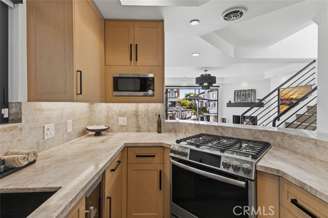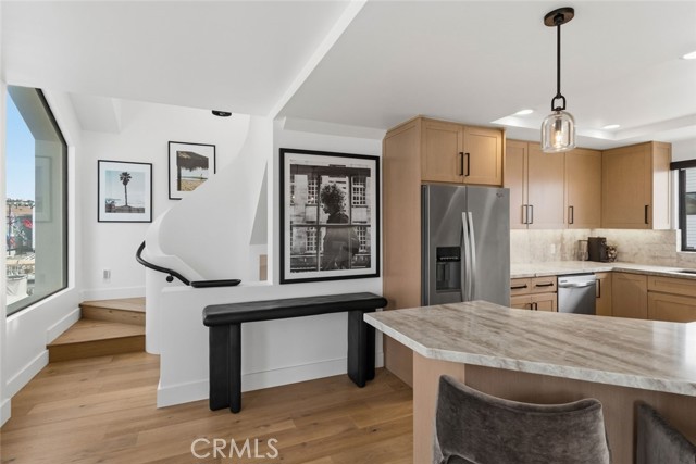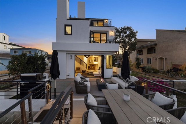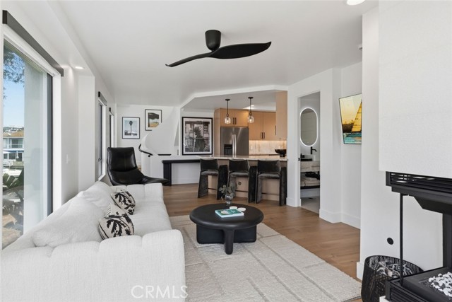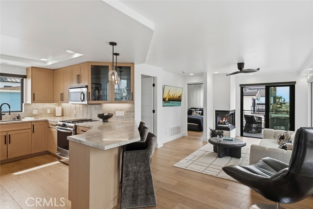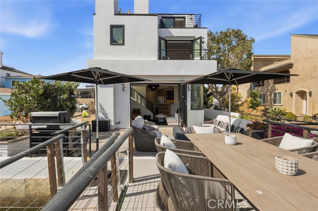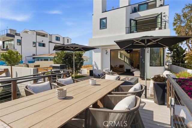 Completely remodeled luxury bayfront duplex in Newport Beach with private dock and just steps from the ocean. Recently elevated with high-end finishes and designer touches throughout, offering a rare blend of luxury waterfront living and flexibility of ownership. Situated along a quiet bay channel facing Newport Island, this location delivers a calm and intimate harbor setting. Watch the paddleboarders cruise by or untie your boat and head out on the bay. Pass under the Newport Blvd bridge and the greater harbor opens up to you. Motor to Lido Marina Village, the Cannery, Billy's & Class of 47, loop the islands, or venture out to the open ocean. Walk across the street to 40th Street Beach where the jetties frame the waves and the blue Pacific ignites your imagination. Bay side unit (3 bed | 4 bath | 1-car garage) opens directly to the water through expansive bifold doors connecting the living room to the bayside deck and dock. Both bay-facing bedrooms have private balconies. Middle guest suite has a Mr. Steam shower. Primary suite has its own fireplace, dual vanities and skylights. Includes a laundry/beach towel room. Ocean view unit (2 bed | 2 bath | 2-car tandem garage) offers an open-concept great room where the kitchen, living area and fireplace flow to an ocean-facing balcony. Primary bedroom has two balconies facing opposite directions with Pacific Ocean and Catalina views one way, and Saddleback Mountain & Newport Coast hills the other. Primary bath has twin skylights, floating double vanity and oversized glass shower. Both units completely renovated top to bottom, both kitchens and all 6 bathrooms. Kitchens feature Taj Mahal quartzite countertops, full slab backsplash, rifted white oak cabinetry & Kohler touchless faucets. Bathrooms redesigned with Restoration Hardware vanities, quartzite countertops, porcelain tile showers, marble master shower with glass doors & Delta/Kohler fixtures. Interiors include natural hardwood flooring, Emtek hardware, Hunter Douglas blinds & new interior doors. Exterior includes full repaint, resealed decks, blacked out railings, tinted glass garage doors, epoxied floors, Restoration Hardware sconces & new glass entry doors. Corner lot next to a landscaped greenbelt with no direct neighbor, adding space, privacy and light. Live in one, host guests or family in the other, or use one or both as a rental. All furnishings and new Duffy available and negotiable separately. Turn the key and live the Newport dream.