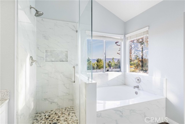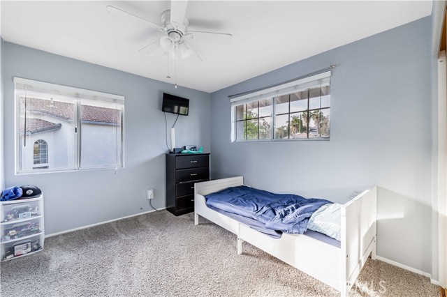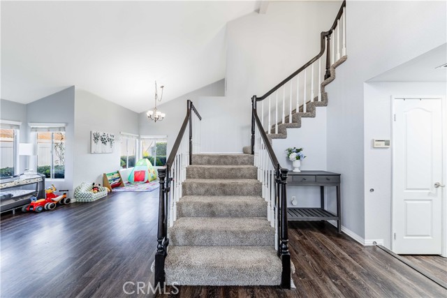 Step inside to soaring ceilings and an abundance of natural light that create a bright, open atmosphere throughout. The flexible front living space offers endless possibilities—perfect as a formal dining area, additional lounge, or entertaining space. As you move further in, the home opens to a beautifully updated kitchen that truly serves as the centerpiece. Featuring stunning countertops, brand new appliances, a smart range, a sleek Kohler faucet, and an expansive walk-in pantry, this kitchen delivers both style and everyday practicality. The adjacent breakfast nook and inviting family room with fireplace create a seamless flow for gatherings, holidays, or quiet nights at home. A highly desirable main-floor bedroom and full bathroom provide ideal flexibility for guests, multigenerational living, or a private office setup. Upstairs, you’ll find generously sized secondary bedrooms and a refreshed bathroom, while the primary suite offers a peaceful retreat. With vaulted ceilings, dual sinks, a soaking tub, separate walk-in shower, and beautiful views of the surrounding hills, this space is designed for comfort and relaxation. This home has been extensively upgraded with long-term value in mind, including a nearly complete PEX repipe, upgraded 200-amp electrical panel, newer water heater, whole house fan, and a recently serviced HVAC system. Additional enhancements such as fresh interior door paint, upgraded LED daylight lighting throughout, reglazed bathroom surfaces, new shower rods, and a brand new sprinkler controller add to the home’s overall efficiency and appeal. Step outside to a spacious backyard designed for both entertaining and unwinding. The Alumawood patio cover creates the perfect shaded setting for outdoor dining, while vinyl fencing and mature landscaping provide privacy and a welcoming environment to enjoy year-round. Backing to a street with no direct rear neighbors, the yard offers a unique sense of openness not often found in the area. Ideally located just minutes from everyday essentials including Costco Wholesale, Trader Joe's, Target, and quick access to both the I-15 and I-215, this home combines comfort, convenience, and lifestyle in one exceptional opportunity.