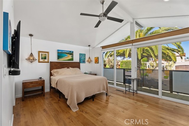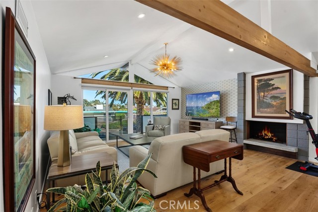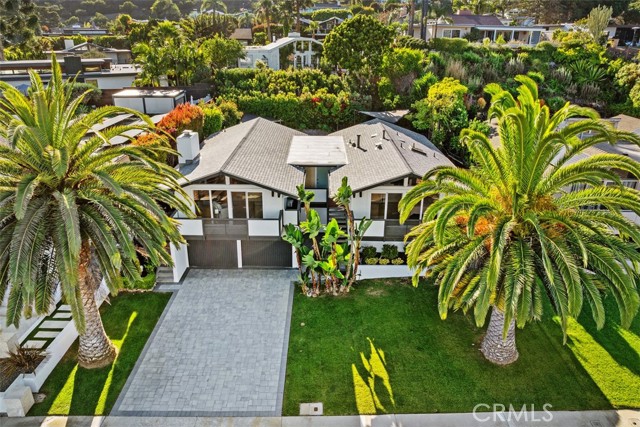The primary suite is pure sanctuary — ceiling fan, a wall of closets, and a spa-inspired ensuite with stone tile, dual vanities, and a walk-in shower. Rich wood floors carry warmth throughout, while chandeliers and recessed lighting add a polished, contemporary spirit. A flexible front bedroom opens via glass sliders to the yard, and the guest bath impresses with travertine finishes, dual sinks, and a shower-over-tub. Outside, a private deck off the family room leads to a serene yard lush with mature plantings and fruit trees. Exotic palms grace the front, while dramatic garage doors and front balconies announce the home's bold character. Original floating concrete stairs ascend to the main level, where post-and-beam construction, soaring glass expanses, and a fireplace whisper of Bissell's genius. No HOA. No Mello-Roos. World-class beaches, resorts, and schools moments away. Only 73 were ever built — and this one is waiting for you.