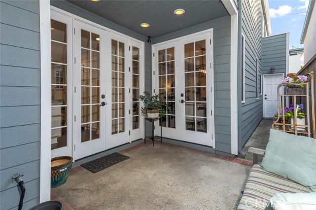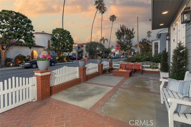 farmhouse sink, with a charming courtyard patio, inviting family room, dining area, and