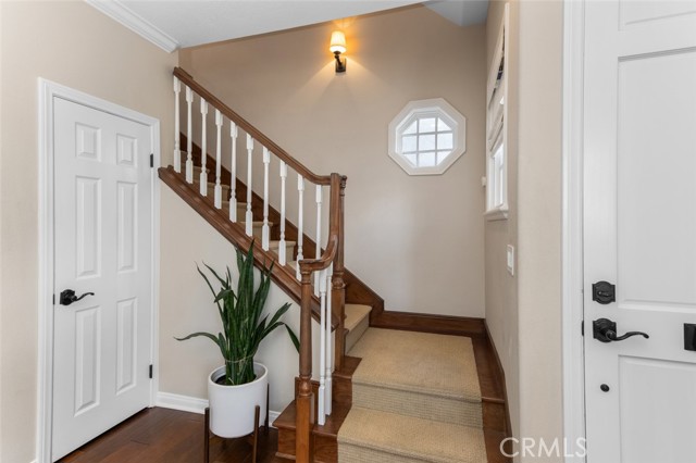 powder bath complete the first floor. Upstairs, a skylit hallway leads to a stunning