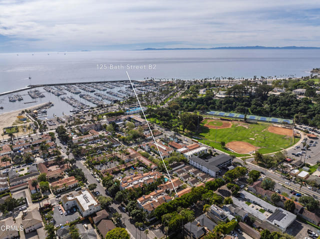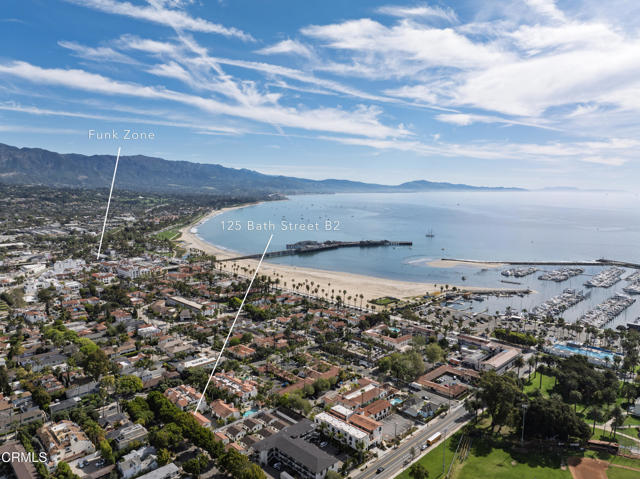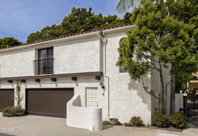 Live the Santa Barbara coastal lifestyle in the heart of West Beach, a hidden gem in tropical oasis of Harbor Court, just moments from the sand, harbor, Funk Zone, and downtown. This Mediterranean-style lock & leave 2-bedroom, 2.5-bath condo offers a unique and inviting floor plan with two spacious ensuite bedrooms, soaring vaulted ceilings, two gas fireplaces, a wet bar and warm hardwood floors. A tastefully updated kitchen with stainless steel appliances and stylish bathrooms complements the home's easy living. The primary suite includes a walk-in closet and cozy fireplace. While the private patio and balcony provides a perfect setting for outdoor dining or morning coffee. A rare attached two-car garage adds convenience and storage. Surrounded by lush landscaping and gated security, Harbor Court offers a peaceful, resort-like setting with sparkling pool, spa, sauna, table tennis, shuffleboard, outdoor shower, and a built-in BBQ area for gathering with friends. Whether used as a full-time residence or a convenient pied-a-terre, this home embodies the relaxed elegance of quintessential Santa Barbara living.
