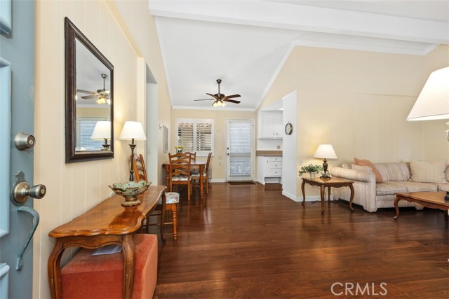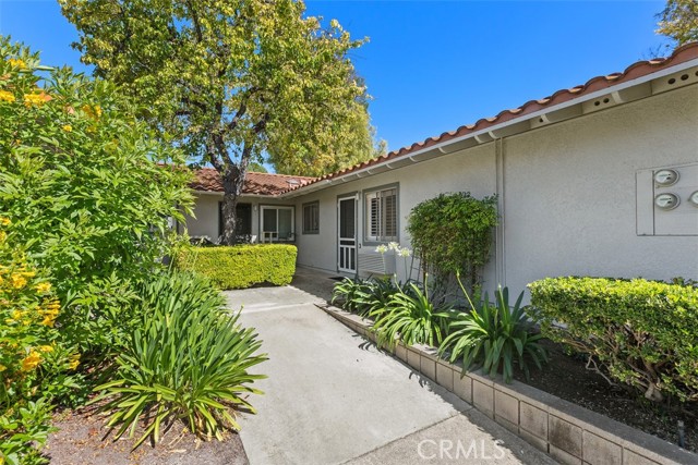 Don’t miss this desirable “SAN SEBASTIAN” model, offering the feel of a single-level, stand-alone home with no one above or below. The "C" Unit is attached to only one wall, enhancing privacy and livability. Ideally located with GREAT CURB APPEAL, enjoy convenient front access with nearby parking. A gated front patio welcomes you into a peaceful, greenbelt setting surrounded by mature trees. The home features both front and rear entries, a shared courtyard, and an additional large private patio—perfect for indoor-outdoor living and wonderful cross ventilation! The kitchen offers abundant cabinetry and counter space, a window over the sink, and direct outdoor access. The well-designed layout includes two separate bedrooms for privacy. Both bedrooms feature brand-new carpet, with the primary suite offering mirrored closet doors and a tranquil view. A unique opportunity: both bathrooms can be fitted with windows, increasing natural light and ventilation. One bath features a tub/shower combo; the other, a step-in shower, both with large vanities and grab bars. Additional features include cathedral ceilings, laminate flooring, plantation shutters, smooth ceilings, excellent natural light, nearby carport parking with guest spaces, and exterior storage. Add all this to the amenities offered by Laguna Woods Village, a 55 plus community with a 27 hole championship golf course and 9 hole executive course, tennis and pickleball, fitness centers, pools, an equestrian center, community gardens, an art studio, a world class woodshop, over 200 clubs and organizations, free community bus service, economical RV storage, guard gated security, and an ideal location approximately 6 miles from Laguna Beach. Country Club living at its best. Carport 2096, Space 5.