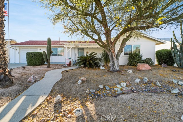 Welcome to this beautifully maintained home in a desirable 55+ community, offering comfort, simplicity, and easy everyday living. This 2-bedroom, 2-bath residence features a spacious, inviting layout with tile flooring, abundant natural light, and a seamless flow among the living, dining, and family areas—creating a comfortable space to relax or gather with friends and family. The kitchen offers ample cabinetry and generous counter space, making it both practical and easy to use. Over the years, the home has been thoughtfully updated with refreshed flooring, kitchen finishes, countertops, appliances, updated bathrooms, and interior and exterior paint—showcasing pride of ownership throughout. The bedrooms are generously sized, and the updated bathrooms and indoor laundry room add to the home’s convenience. A large enclosed *SUNROOM* provides additional space to enjoy your morning coffee, read, or unwind in a peaceful setting filled with natural light. Outside, the backyard is designed for low maintenance and easy enjoyment, featuring covered patio areas for relaxing in the shade and fruit trees that add a special touch. The front yard is also low-maintenance, making upkeep simple. A detached *BONUS* room with its own A/C is perfect for a craft room, hobby space, or quiet retreat. The garage features epoxy flooring and myQ smart technology for easy, secure access. Enjoy low HOA dues and access to a welcoming 55+ community with amenities including pools, a spa, fitness center, shuffleboard, lawn bowling, and a variety of clubs and social activities—offering opportunities to stay involved and enjoy an active and fulfilling lifestyle. A wonderful place to enjoy comfort, community, and a relaxed lifestyle—welcome home.