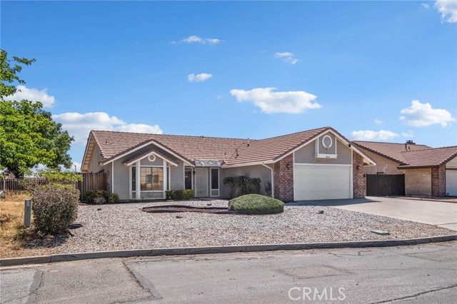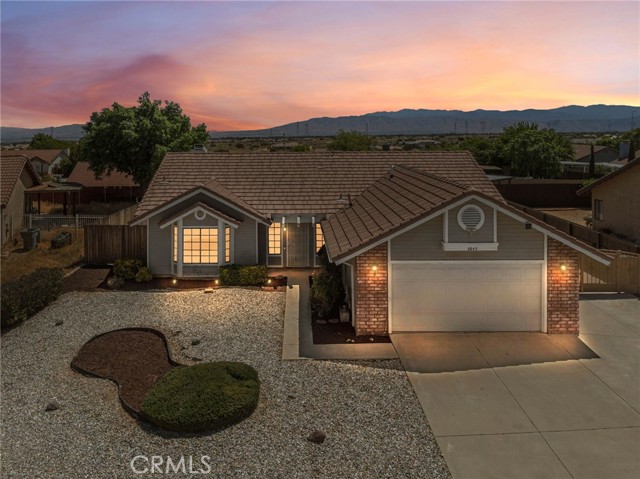 The front yard features low-maintenance desert landscaping, along with a wide driveway and 2-car garage.