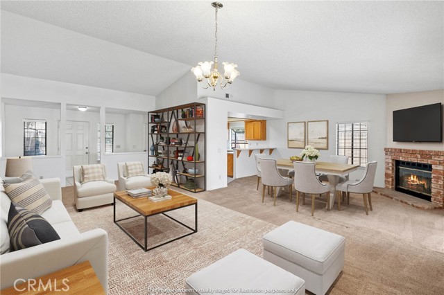 Spacious 3-bedroom, 2-bathroom single-story home with a functional and open layout! This home features a bright living and dining area with vaulted ceilings and a cozy brick fireplace—perfect for relaxing or entertaining.