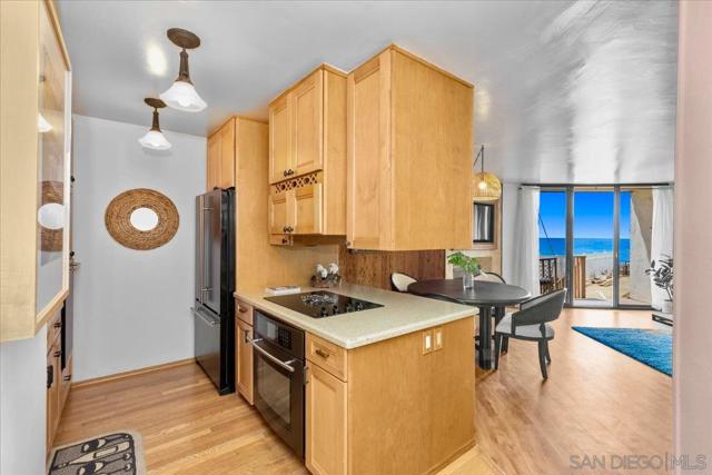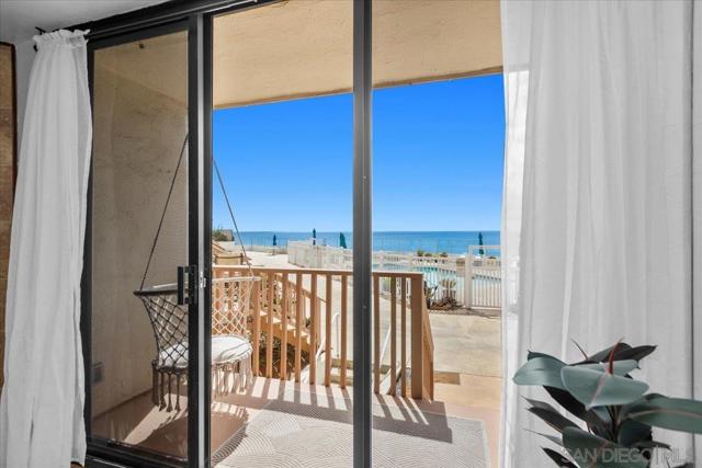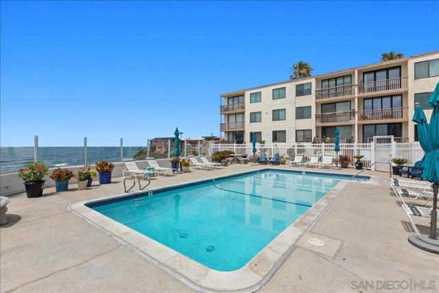 Coastal Premium ocean front living next to a pocket beach in SD's most vibrant seaside communities. This updated residence offers effortless indoor-outdoor living. Ocean views greet you from your private balcony & direct pool access. Perfect for morning coffee with ocean air, afternoon dips w/out leaving home, & breathtaking sunset skies. The updated kitchen & bathrooms feature premium appliances & finishes, w/ expansive cabinetry, contemporary surfaces, & a functional open layout designed for comfort & ease. Live where others vacation. Beyond the home itself, the lifestyle extends into the very fabric of Ocean Beach, the SD coastal community known for its laid-back charm, walkability, & vibrant local culture. Steps to the sand & Sunset Cliffs, you are surrounded by neighborhood cafés, acclaimed restaurants, local boutiques, and scenic coastal paths that make everyday living a vacation. The thoughtfully designed 1,067 sq ft layout with 2 full bathrooms offers comfort & privacy, while generous storage throughout provides practical everyday functionality. Move-in ready upgrades completed two years ago blend modern style w/ coastal sophistication, creating a turnkey opportunity well suited as a primary residence, beach retreat, or lifestyle investment. Properties offering ocean views, poolside access, & ground-level convenience are increasingly rare and difficult to purchase. More than just a home, this is a place where the rhythm of the coast shapes everyday life. An opportunity to live surrounded by freedom, air, light, & water. 30-day minimum lease for rental.
