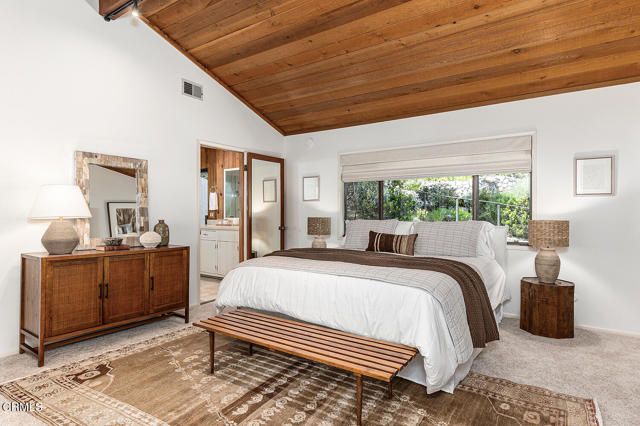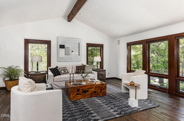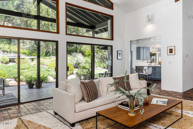 Tucked away on a quiet cul-de-sac in Pasadena's highly sought-after Linda Vista neighborhood, 1435 Afton Street is a striking mid-century contemporary residence featuring a split-level design, set on an expansive 30,677 sq ft lot. Defined by its architectural character, the home showcases dramatic vaulted ceilings, exposed beams, and clerestory windows that fill the interiors with natural light while creating a seamless connection to the surrounding landscape. A formal entry leads into the open floor plan, where generous living and dining spaces are anchored by a stunning family room with walls of glass and sliding doors that open to a private patio and lush grounds -perfect for indoor-outdoor living and entertaining. The spacious kitchen is filled with natural light and offers a functional, well-designed space that integrates seamlessly with the home's open layout. The flexible design includes five well-proportioned bedrooms, ideal for guests, a home office, or multigenerational living, while the primary suite offers a peaceful retreat with tree-top views. Set amid beautiful, mature landscaping, the expansive grounds provide exceptional privacy and multiple areas for relaxation and gathering, highlighted by a sparkling pool thoughtfully integrated into the natural setting. This is a rare opportunity to own a distinctive architectural home in one of Pasadena's most desirable neighborhoods, just moments from the Rose Bowl, Old Town Pasadena, and some of the area's best dining, shopping, and outdoor amenities.